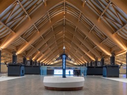 One of the major focal points for the new-look Clark International Airport is in the departures hall, where vast, vaulted wooden ceilings creates a church-like quality. “We wanted to uplight the large wooden glulam arches to showcase the warmth of the wood and the scale of the cathedral ceiling,” de Jesus explained. “It is a simple method, but because of the repeated pattern created by the light, it had a grand effect.