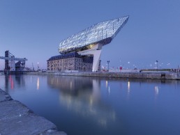 Zaha Hadid Architects have renovated and reimagined the new headquarters for the Antwerp Port Authority, the Havenhuis, with an expressive structure. Positioned above a disused, listed fire station, the multi-facetted façade sparkles with reflections of sunlight and the surrounding water. The new structure is commonly referred to as either a diamond or a ship’s hull and provides a fascinating juxtaposition of modern and historic architecture. The mixtures of glass panelling on the exterior of the structure provides a dynamic nature to the architectural merge, emphasising the contrast between the modern glass and the traditional stone box below.