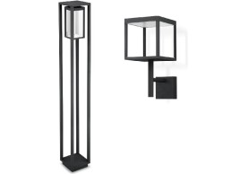This outdoor lighting series takes up the look of traditional lanterns. The distinctive combination of an aluminium body with glass surfaces underlines the pleasant light temperature of the LEDs. The wall lamps are equipped with an integrated motion detector, with a detection range of six to ten metres and a detection angle of 120 degrees. The lighting time can be set between eight seconds and eight minutes. The series includes two wall lamps, two portable lamps and a matching bollard lamp.