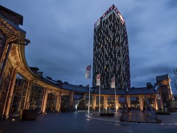 While the hotel’s commercial operator Sokotel initially wanted the building to look as though it had just been transported from Las Vegas or Times Square, the city architects were hesitant; lighting a tower hotel to such a level would significantly effect the cityscape and the image of the city during dark periods and so the task was to find a lighting solution for both.