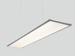 Its delicate profile with lateral light integration and its suspension cable providing the power supply means Chiara is discreet and appears to be floating in the room. When switched off, the semi-transparent, micro-structured conical prism sheet allows a hazy view. The entire electronics are integrated into the canopy and come with an optional accessory set. It can also be accommodated in a suspended ceiling to reduce the visual impact to an absolute minimum.