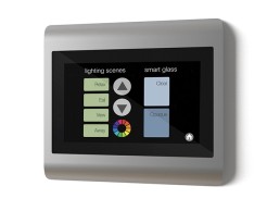 Precision-engineered from aluminium and glass, the Ultra-cool Touchpanel can control a single room, a whole apartment or an entire building. Vibrant, animated graphics provide powerful and intuitive control of services including lighting, blinds, shades and temperature, including a built-in thermostat, as well as a comprehensive dashboard and monitoring functions.