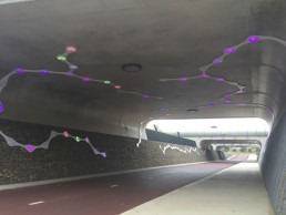 Incoming cyclists or pedestrians are detected via sensors at both ends of the tunnel. Depending on the amount of people in the tunnel, different light mood programs are shown.