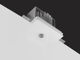 With only the optic’s enclosure visible, Cloud is a single piece where the voluminous heat sink remains hidden in the ceiling even when the body is extracted, minimising its presence. Available in two sizes, seven power outputs and four beam angles, Cloud has a range of lumen packages and colour temperatures to cover varied installations. It is fitted with aluminium micro optics that ensure high performance, wide beams and proprietary lenses that guarantee quality and reliability.