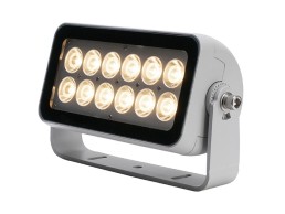 The Flood One EO is a high output, IP66 rated white LED floodlight in a very low-profile design, intended to fit into small spaces for façade lighting applications. Available in multiple colour temperatures (2,700K, 3,000K, 3,500K and 4,000K), it features a standard 10° beam angle with optional spread lenses of 20°, 40°, 60° and 10x60° for custom lighting applications. The Flood One EO performs at temperatures between -40°F to 125°F, and maintains 70% of its lumens for 150,000 hours.
