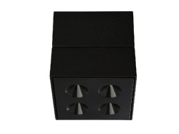 Grid is a square ceiling-mounted luminaire integrating four effective spotlights. By a special LFO lens, the light can be focused to a minimum of 8mm at the light exit opening, and then be re-expanded into a light beam of 30 or 55 degrees by the very same lens. This leads to excellent glare control and thus contributes to the improvement of visual comfort. The powder-coated surface of the luminaire body is optionally available in black or white.