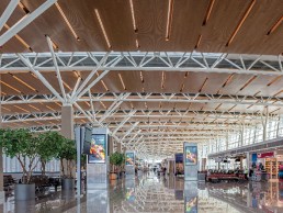 “While this creates a comfortable and engaging environment for passengers, it does come with challenges, such as potential glare on check-in kiosk screens, retail environments with their own lighting strategies, and legibility of way finding systems,” he continued. “As these elements shifted through the design and construction process, we had to be agile and creative to satisfy requirements on a unique case-by-case basis.”