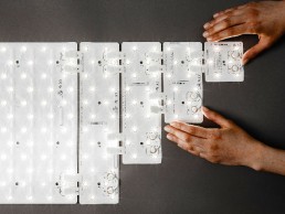 Cooledge TILE Exterior is a wet location LED system that frees light from the constraints of fixtures to illuminate any architectural geometry and give designers new ways to accentuate building façades. Designed as a complete IP65 rated system, TILE Exterior’s modular, flexible form scales easily to cover large surface areas while a smaller set of FIT segments allow quick configuration around angles, corners and site obstacles to seamlessly illuminate exterior architectural structures.