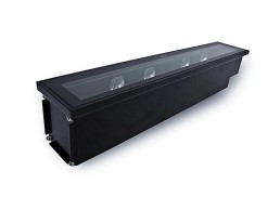 The Accadia LED inground luminaire is suitable for functional and artistic illumination of façades as well as accenting of architectural features such as parapets, columns, or statuary. The LED inground luminaire features refined architectural styling and an advanced reflector system engineered for uniform lighting from the ground up on vertical surfaces. The optics may be adjusted to one of four positions for optimal illumination of the surface. It is available in three sizes with nominal lengths of one, two or three-feet.