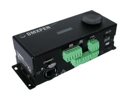 DMX PEN Control Box records a DMX512 or ArtNet signal from any source and stores it on an on-board removable micro SD card. On this model, the playback control can be made through digital or analog I/O line or serial communication port as RS232, RS485 or Ethernet as well, allowing a good interface with any domotics or automation systems. Thanks to its merge function, it can receive an ArtNet signal and transform it into DMX512.