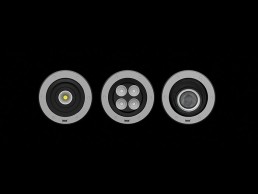 Stra is available in four versions that differ in the way the optics are adjusted: manually, with a motor or fixed. Motorised adjustment allows users to position the light beam ±10°, using an infrared remote control. The versions with one or two independent optical groups, are adjusted manually; each is tiltable through ±15° (x- axis) and ±30° (y-axis). These can be fitted with two optics with different beams. The version with fixed optics is available with a white light (2,700K, 3,000K and 4,000K) and RGBW. It can be fitted with an elliptical magnetic filter so that the beam can be adjusted externally without having to remove the device from its installation.
