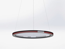 EOS LED Circular is characterised by a slim frame around a transparent panel, which makes the luminaire elegant and an unobtrusive element in any room. When switched on, the luminaire changes its form and creates a perception of pleasant circular light, hanging in the air. Emitting light both up to the ceiling and down to the workspace, it diminishes glares and delivers high visual comfort. The luminaire is available in different colours and dimensions: 470, 560, 650, 740, 825mm.