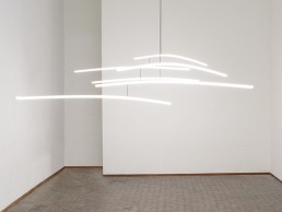 In the light installation Lumen Balance, lamp tubes float in the gallery space as naturally moving mobiles. These tubes create various hues of white light, in which visitors can recognise the hourly and seasonal changes in daylight. Stallinga plays with the perception of light by making the viewer aware of the influence that light has on our perception of time and our sense of warmth, simultaneously showing light as an energy that moves.