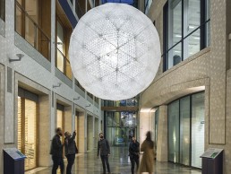 The lighting core included 40 Xicato XIM modules, 1-10V version, 4,000K, controlled with 0-10V DMX dimmers. Arup developed a 3D interactive web-based interface for visitors that allowed anyone to play with the lit sculpture through an ad-hoc Wi-Fi connection. In this way, the richness of visual sensations offered by the interplay of light, darkness and reflections, both inside the sphere and in the surrounding environment, can be created by the visitors who have a direct role in shaping the sculpture’s lit behaviour.