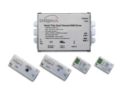 Vesta Flex is a family of dual channel LED drivers and control modules designed to simplify and reduce the cost of connected tunable white luminaires. Compatible with industry standard wired and wireless lighting control protocols, including Wi-Fi, Bluetooth, DALI and 0-10V, the Vesta Flex system enables simplified, future-ready design flexibility for OEM luminaire manufacturers to meet the needs of their end customers without requiring redesign or recertification. All Vesta Flex control options provide independent tuning of intensity and CCT.