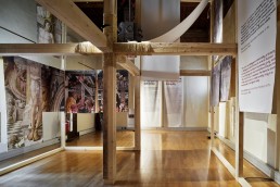 The exhibition Andrea Mantegna: ‘painter from Mantua’ (curated by Elisa Boeri and fitted out by Filippo Bricolo) offered a wide-ranging consideration on Mantegna’s work and life. The outfitting, in which the reference to Renaissance wooden machines is echoed, consisted of an itinerary made of images, details and words where the spectator was asked to act and physically interact with the artefact.