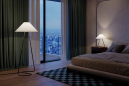 The lampshade is described as the perfect balance between past and present, drawing inspiration from the 1950s aesthetics and blending it with contemporary design. It comprises a floor, table, and pendant lamps, which are all unified by a white cotton or Tyvek lampshade. Each piece is accented with rope detailing, either wrapped around the metal stand of the table or the floor lamp or used as a suspension for the pendant version.