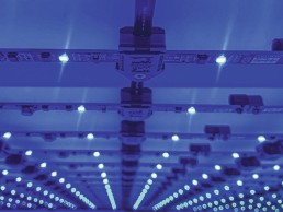 Standard LED pitch on the light engine board is 60mm for the fixed white and RGBW light engines. For the digital control pixel system four spacings are available from 40mm up to 150mm. TLS offer two different light engine spacings on the suspension wires; premium configuration with boards spaced 60mm apart and standard configuration with boards spaced 120mm apart. The light engine boards are segmented and can be cut to length on site to fit any size of light box.