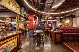 A RIO A (Remote Input Output Audio) device provides the ability to beat match music and lighting sequences in perfect harmony. Thanks to the RIO A, flashing effects are also triggered when a customer hits the dart board bullseye. The Pharos solution works in harmony with Signify Dynalite, utilising elements like the Timeclock, which automatically changes scenes to subtly transition the venue mood, while also reducing power costs.