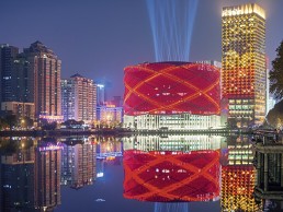Purpose-built for Franco Dragone’s ‘Han Show’ the theatre’s façade is covered in 18,000 red aluminium LED disks resembling the ancient symbolic Bi Disks from the Han Dynasty. The building, which benefits from a fantastic lakeside site, features a transformable auditorium able to seat 2,000 and one of the world’s largest moveable LED screens, which is mounted on three robot arms fixed to backstage columns.