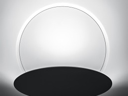 Designed by Marco Pagnoncelli, CAVEAU combines the prerogatives of a spotlight and the size of a wall lamp with a brand new fully retracting system. Opening and closing is fully automated, consisting of a round element hinged to the wall. When closed it merges with the wall, without any protrusion. While opening, the disc is positioned at an angle chosen according to brightness requirements. Part of an automated disc, CAVEAU includes an LED circuit of 24V. The electronic control unit, compatible with most home automation systems and the power supply unit, are incorporated in the recessed section.