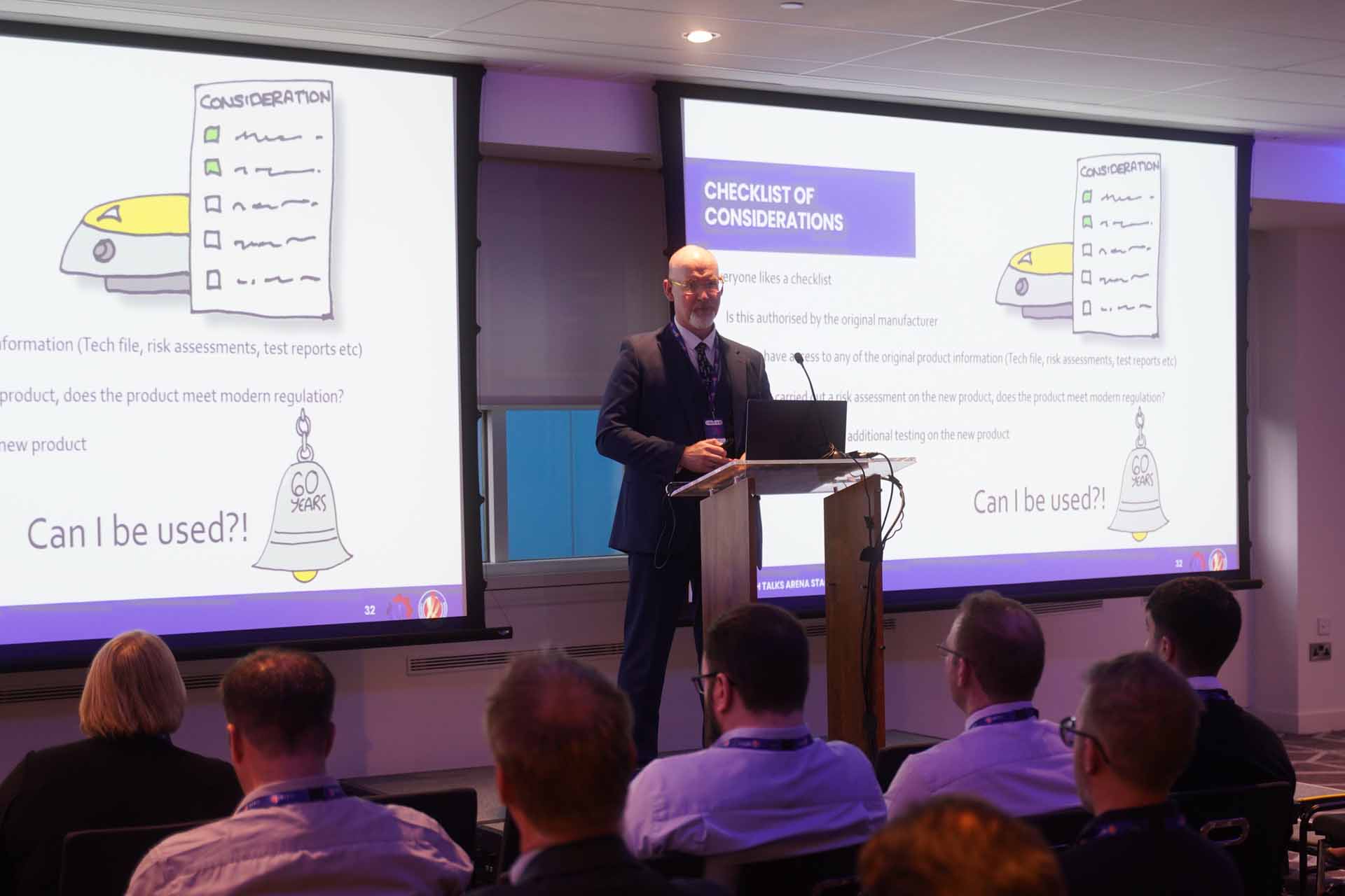 The final presentation for the morning on stage one was Andy Hughes from Zumtobel Group, and his presentation, ‘When the Rulebooks Don’t Apply’. Hughes’ presentation tackled the thorny issue of what manufacturers should do when standards haven’t yet been harmonised. He explained how, in the past, compliance was fairly straightforward – if a product met the relevant standard, it was assumed to meet legal safety requirements. However, changes to EU directives, the introduction of independent ‘HAS consultants’ to review standards, and Brexit have complicated matters. Many standards now fail the harmonisation process, leaving manufacturers caught between outdated official lists and newer, more relevant versions. Hughes stressed that simply following a standard is no longer enough: companies must also carry out risk assessments and document how their products meet essential safety requirements. He outlined the different routes manufacturers can take, from sticking with harmonised standards to using the latest international ones or even building their own compliance cases, while warning that each carries different risks. His key message was that while the system has become messier, the safest approach is to stay as up to date as possible, compare old and new standards carefully, and always put risk assessment at the centre of compliance decisions.