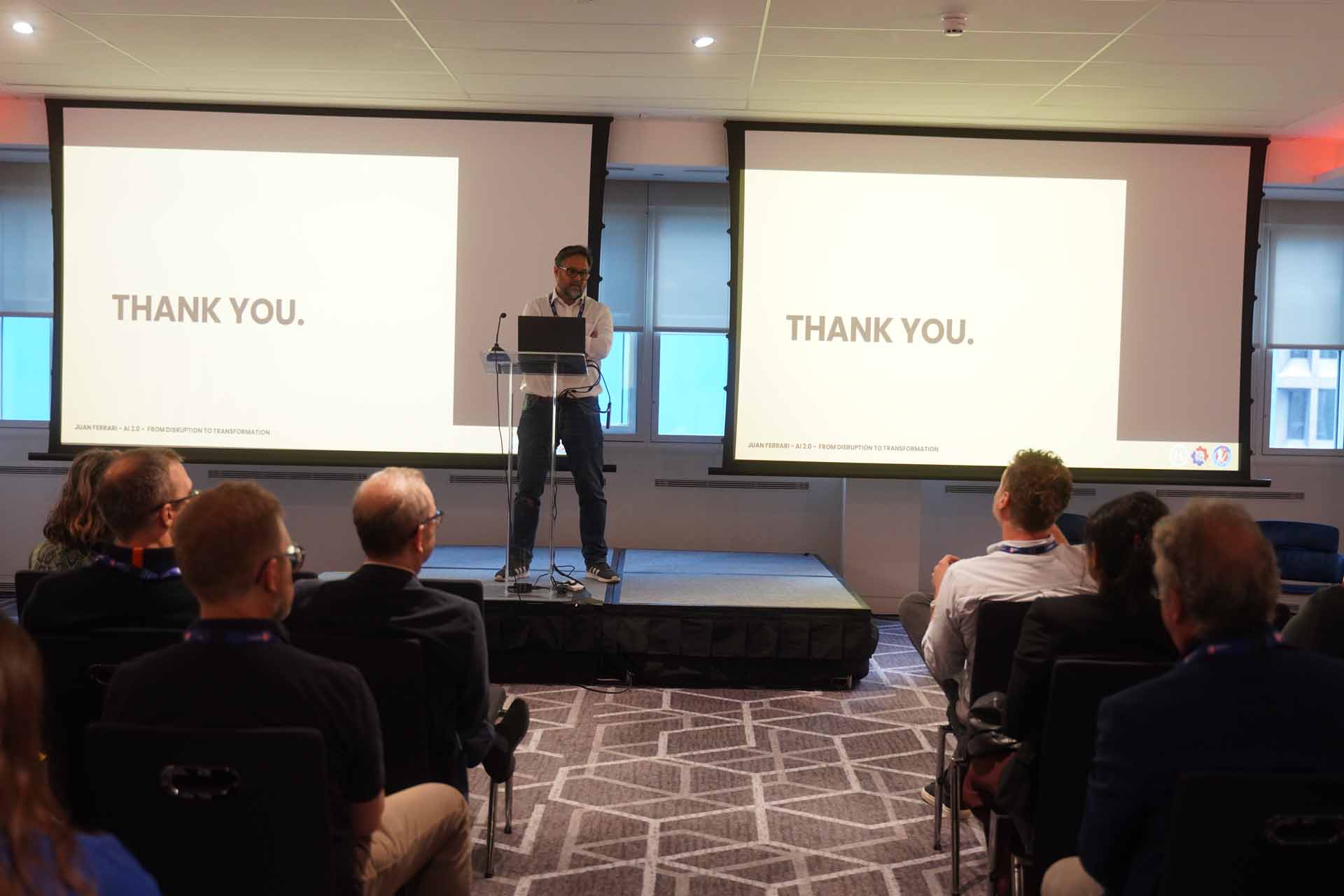 After lunch came the Lighting Design Stage (stage two) to see the much-anticipated presentation from Juan Ferrari of Hoare Lea, where he gave a revised version of his IALD presentation on AI. Titled ‘AI 2.0: The Future of Lighting Design’, Ferrari explored how artificial intelligence is reshaping the creative process and what that means for lighting designers. He spoke openly about his own journey of learning – from initially knowing little about AI to now experimenting with it in meaningful ways. His key message was that AI should be seen as a tool, not a threat, and that its value depends on the quality of data we feed it. Ferrari highlighted both the opportunities and risks: AI can save huge amounts of time by automating repetitive tasks, generate powerful images and concepts in minutes, and helping designers work more efficiently. But without careful oversight, poor data or outdated information can lead to unreliable results. He stressed the importance of keeping “a human in the loop” to check accuracy, ensure transparency, and apply ethical judgment. Ultimately, Ferrari argued that while AI can provide the “how”, it’s still up to humans to bring the “why”, which is the creativity, context, and meaning behind design decisions.