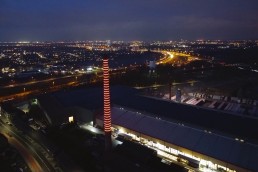 The chimney is now highlighted with 31 rings of colour, which can be individually and remotely set to create hypnotising colour shows, or display the colours of local, national, and international events. This playful way of re-using the monument updated the use and appearance of this well-known and cherished local monument for many more years. The remote access allows for promptly adjusting the colours in response to main events as a show of support.