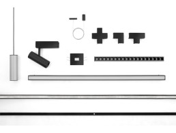 The Ink System is made up of several versatile items, united by the same concept. The elastic and thin cable, in the stretched version, houses a high performance stripLED and acts as a conductor on which it is possible to hook different devices: light profiles with diffused emission or UGR <19 thanks to special darklight cells, adjustable spotlights and pendant lamps. The range includes wall/ceiling paths, modular modules-channels with various junctions and endings that house the conductor cable and transform it into an elegant graphic sign.
