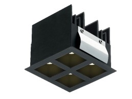Bitpop is a recessed downlight with single or multiple optics that can be installed in false ceilings in two ways: flush with the ceiling or recessed. The family is made up of three versions: single optics, four optics in a line (elements in 1×4), and four optics in a square (elements in 2×2). All three versions feature recessed optics, designed to guarantee the user’s visual comfort. The optics are available with different beams: 17, 30, and 42-degrees, 17×45-degrees; white light with CCT 2700K, 3000K and 4000K.