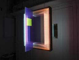 During February and March 2016, Maurici Ginés and artec3 Studio presented Llumversació – a collection of light art at dterra gallery in Barcelona, Spain. The collection aimed to create a new perception of an object through the use of light, in its interaction with materials and filters. Ginés´work explores the event taking place when two colours interact together, and when chromatic additive interference is applied. The resulting ambiguity creates a new virtual sensation.