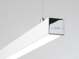 With a cross section of 35 x 35mm Ride is one of the slimmest linear LED-profile systems available. An all-purpose and wide-ranging lighting solution made of extruded aluminium with anodised finish as well as white and black powder coated finish. The integrated mini-converter means Ride secures a continuous light emission up to 15m. Additionally the junctions facilitate an allover light distribution. Equipped with high colour rendering LEDs it is available as a wall / ceiling, recessed or pendant luminaire, and single or system luminaire.