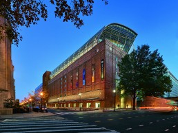 Because of this “hierarchy of brightness”, the lighting for the external façade remained fairly subtle, as Renwick described, serving to accent the architectural elements of the building, including the huge, 42-foot bronze panels mounted either side of the new entrance at the old loading dock.