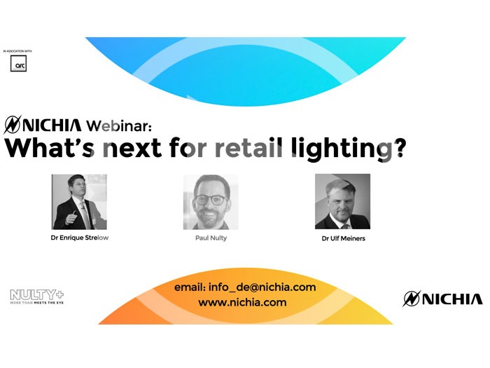 Nichia presents a webinar on retail lighting. Panelists: Dr. Ulf Meiners, MD @ Nichia (Europe), Dr. Enrique Strelow, neuroscience and shopper behaviour expert, and Paul Nulty, founder of award-winning lighting agency Nulty