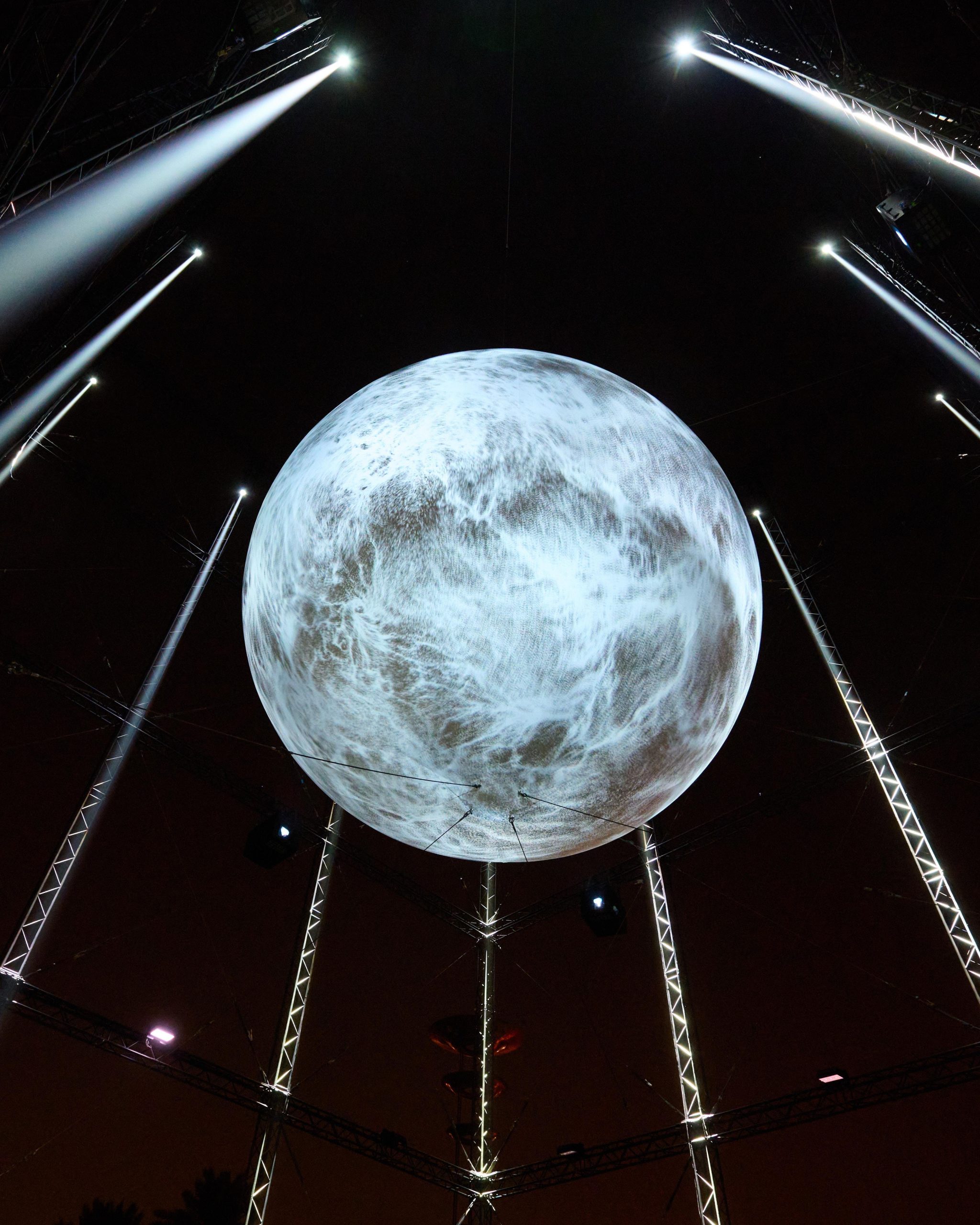 Other honourable mentions include Italian art architecture collective, Luna Somnium’s fuse•, which transforms precise lunar data into a cosmic multisensory experience where shifting visuals and atmospheric design turn scientific observation into a meditative dream-like encounter with the celestial. James Clar’s When the Sky Reaches the Ground (Philippines and USA) displays a monumental sculptural bolt of frozen light, constructed from neon and grid scaffolding, symbolising mom