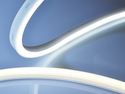 The minimal dimensions and high performance of LINEARlight Flex Diffuse means you can create perfect homogenous lines of diffuse light without visible points of light. Thanks to a careful selection of LEDs and single-bin sourcing, it achieves long-lasting homogeneity and constant light output over its entire lifetime. The top-emitting 800lm/m and side-emitting 600lm/m LED strips are made from high-performance silicone and come with IP67-rated protection.