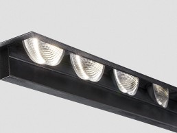 The new MAGIQ Wallwash with Vertical Boost is a module with five integrated spots and illuminates walls extraordinarily evenly and completely without dazzling. Vertical Boost concept: five multifaceted reflectors are mounted at different angles in one module. MAGIQ is a module available with either four or eight spotlights that can be fitted as trim less or recessed. These modules can also be integrated into a trim less channel system: 2LOOK4LIGHT system. Each MAGIQ Spot can be fitted with coloured Korona Cones in 25 Prolicht colours.