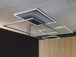 The new Sattler luminaire, based on the Golden Ratio, is available in five sizes. Whether as a rectangle or a square, direct or indirect light emission, Gioco offers a high degree of flexibility and creative scope for a wide range of applications. Its clear lines and transitions along the edges are enhanced by the anodized brush finishes. The fixture comes with an optional Acoustic Panel set, which may be added at any time and ensures a noticeable reduction of reverberation and a corresponding improvement of the overall room acoustics.