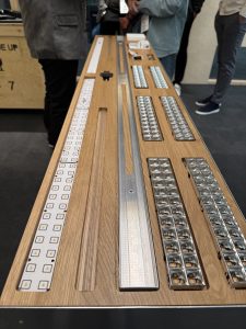 Inside the stand, the philosophy continued. The central storage and display units were standard IKEA cupboards, chosen precisely because they could be reused rather than disposed of. Once the show closed, the pieces were immediately rehomed, this year the cupboards will be rehomed to one of her staff’s family garages to become long-term storage. Mesh’s vertical lighting columns also followed a low-impact lifecycle, constructed from 75% recycled aluminium and reused each year, with only the internal optics upgraded to showcase the latest technology.