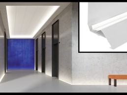 The ZipWave LED 707 provides seamless light quality optimised for ceiling and wall cove with outputs available over 1,000 lm/ft (3,280 lm/m). ZipWave LED 707 is compatible with Armstrong AXIOM indirect light coves for ceiling-to-ceiling and ceiling-to-wall systems. Integral power housing drops into place with plug and play connections, providing quick and simple installation. The cove’s architectural key way means perfect alignment and light distribution.